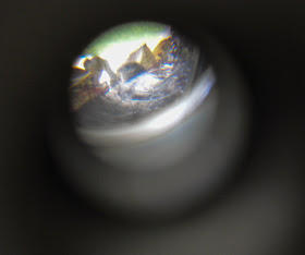 But nevertheless, there they were - mama and eggs. My husband and I stopped using the front door as much as we could, and I let the mailman know they were there so he could be careful. Our peephole looked right into the nest itself so we checked it every day and saw the mama diligently keeping her eggs warm.Then this past Friday, something really magical happened. The papa showed up. We'd never seen him before (or hadn't realized it, if we had). But there was this little boy finch next to the mama, with his red head showing, looking down on the tiny little eggs. (I suppose it could have just been her "man-friend" but I choose to believe it's the papa.) And within an hour, the first little wormy looking baby had appeared!!